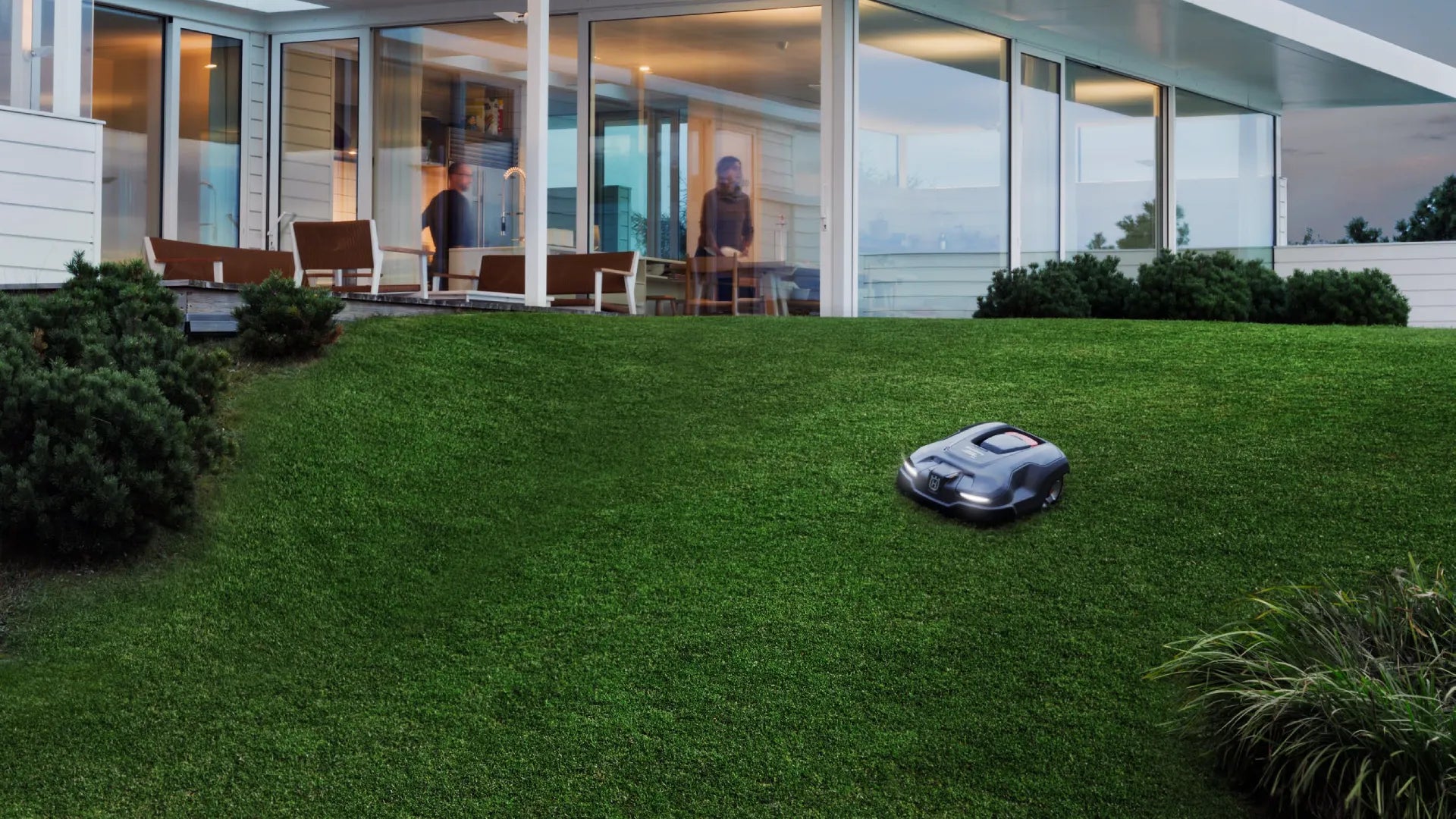 When a robotic mower is working day and night, the noise level becomes extremely important. Husqvarna Automower® has a low-weight durable construction with high quality low energy motors. This makes it ultra silent. This means that it can operate during the night time, without causing any disturbance.