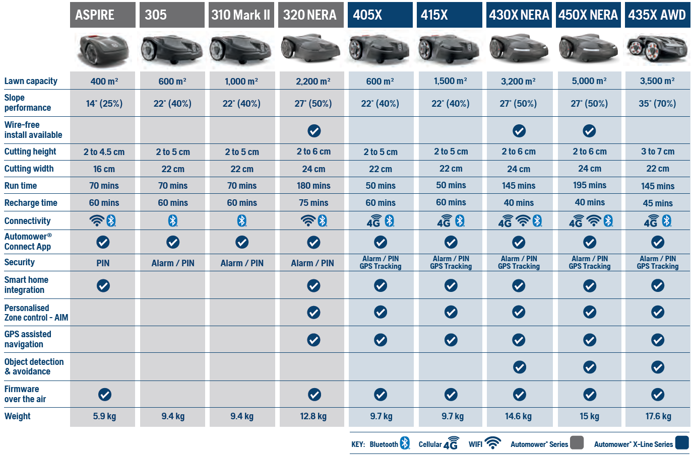 Automower® Connect@Home which provides a subset of functions and settings such as Start, Stop, Park and the ability to adjust mower settings. The connection is made via bluetooth.